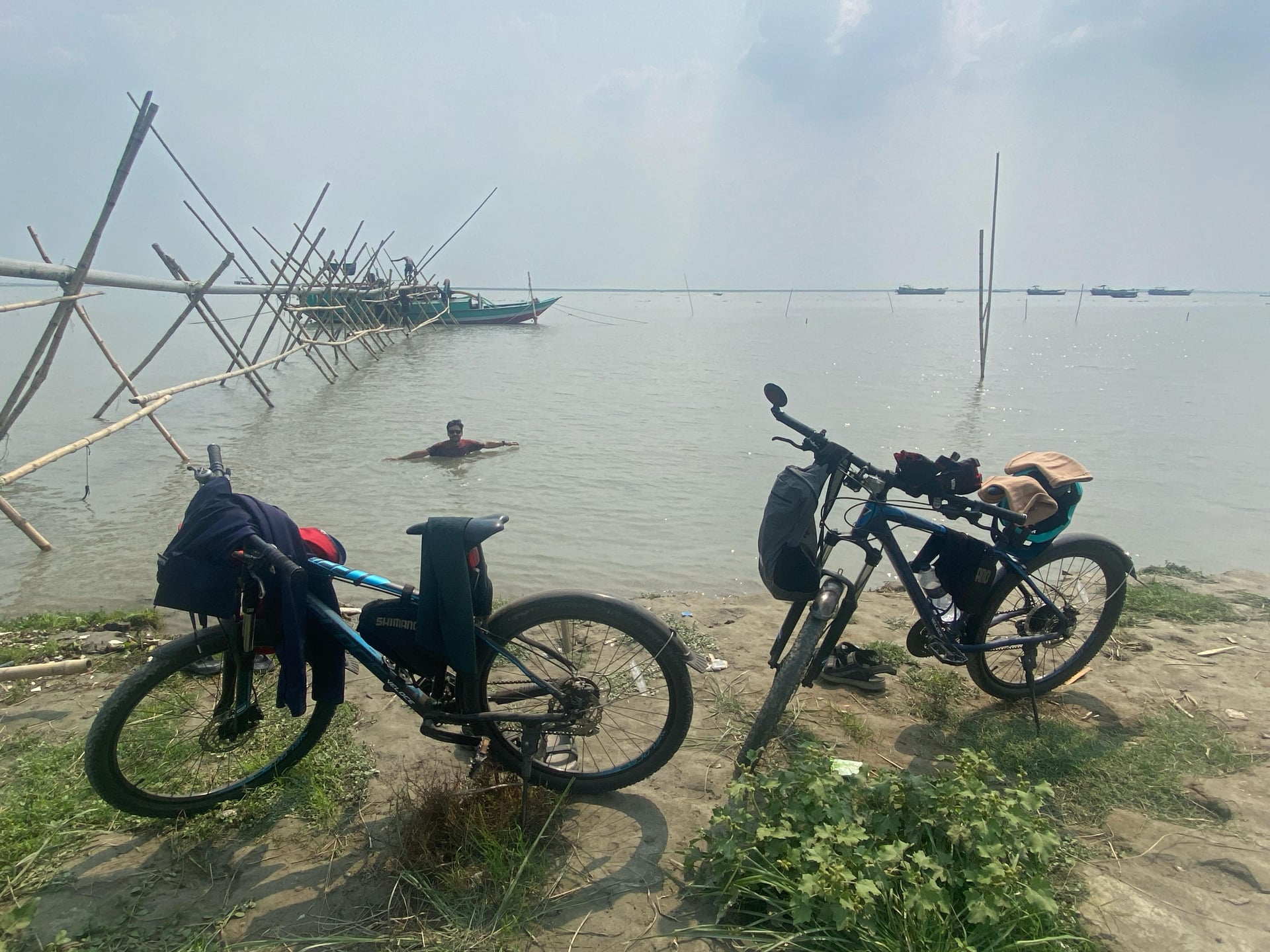 The River Bath: After 67 kilometers of cycling, plunging into the Padma River was pure euphoria. We spent nearly an hour in the water, letting the river wash away our fatigue and refresh our spirits for the journey back.